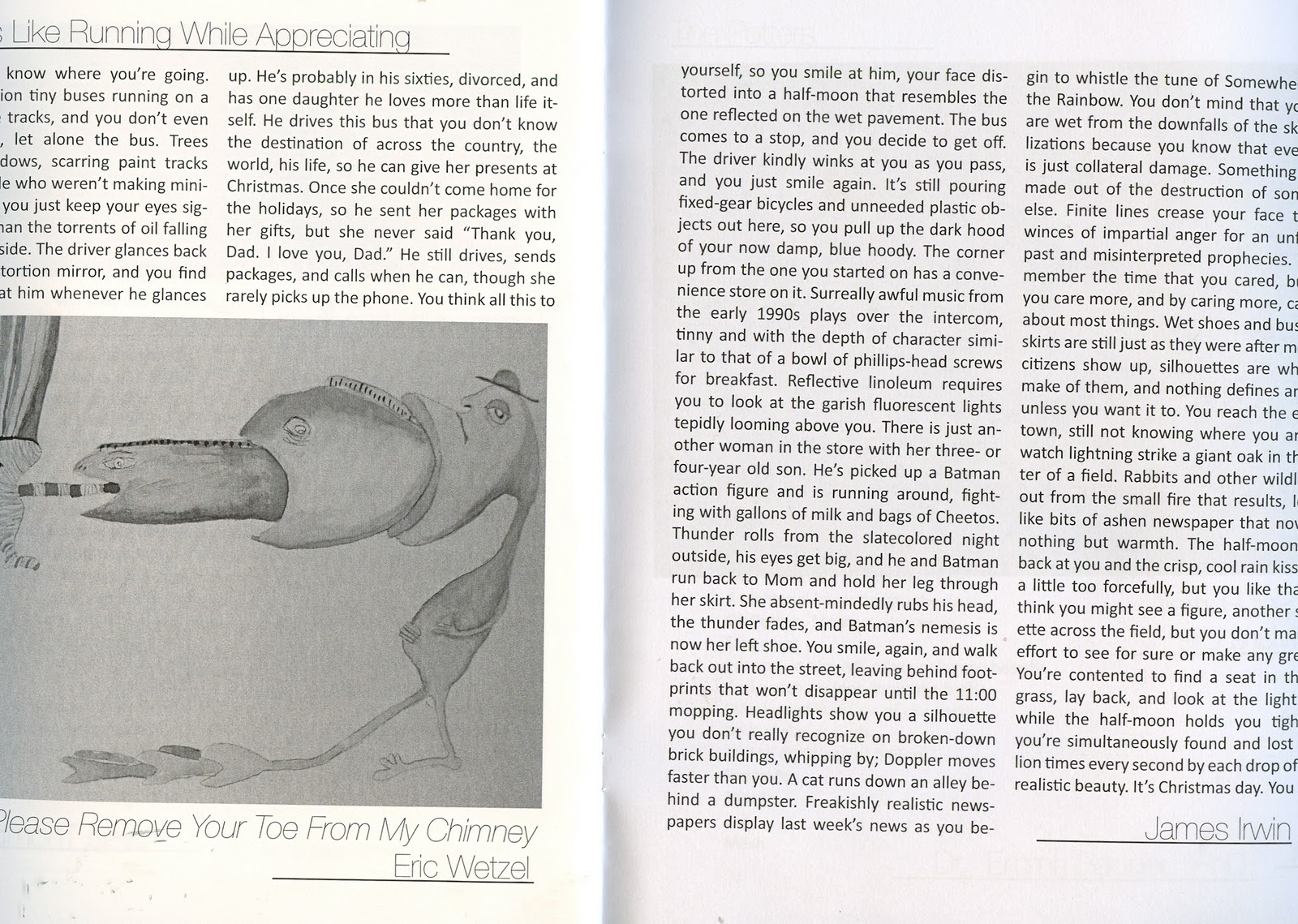 Well, sort of. St. John's publishes a literary magazine of student work every semester, called The Grout, and I got a couple pieces in it! It's a little book about 15 pages long, so it's nothing earth-shattering, but still pretty cool. I submitted a picture I took a couple years ago back in Rock Springs, and the story I wrote recently, Walking Is Like Running While Appreciating.